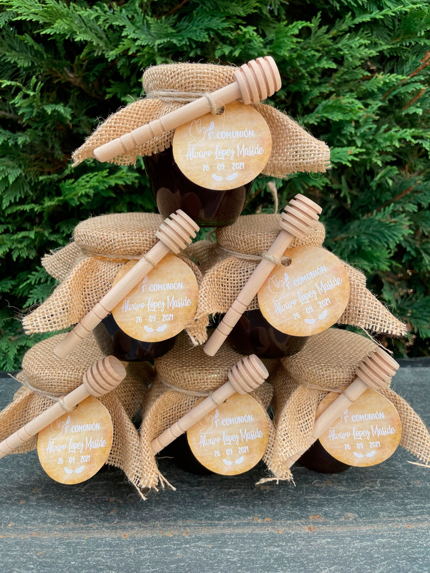 Nuestros botes de miel personalizados son un recuerdo diferente, útil y sostenible. Un regalo que no se guarda en un cajón, sino que se disfruta y se recuerda.
